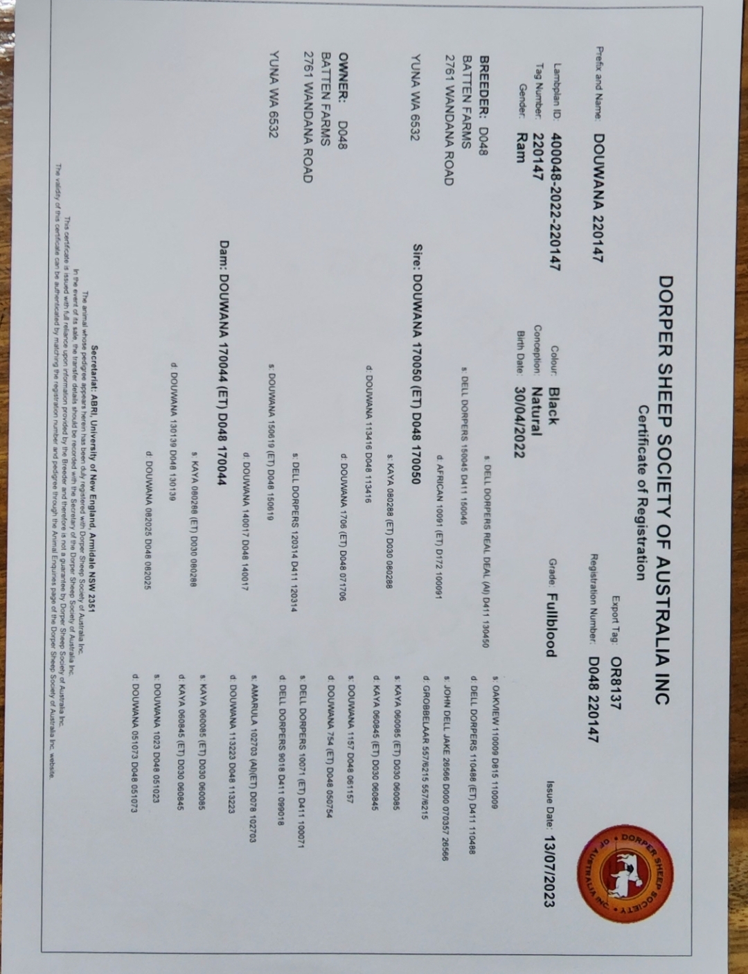 33D.F1.B-2401704Dorper Filial 1D.FB.J-2401648LK.B-230097503-09-2024RisqiBetinaDe'PARWhite, Black Head