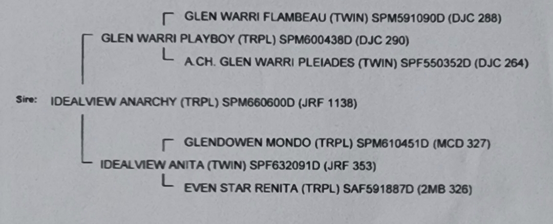 | Keterangan Induk Jantan | Glen Warri Playboy SPM600438D |